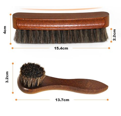 Spazzola per scarpe in puro crine di cavallo naturale con manico in legno e tessuto-Stivali in pelle e applicatore per lucidare, spazzola per la pulizia dei dettagli per auto