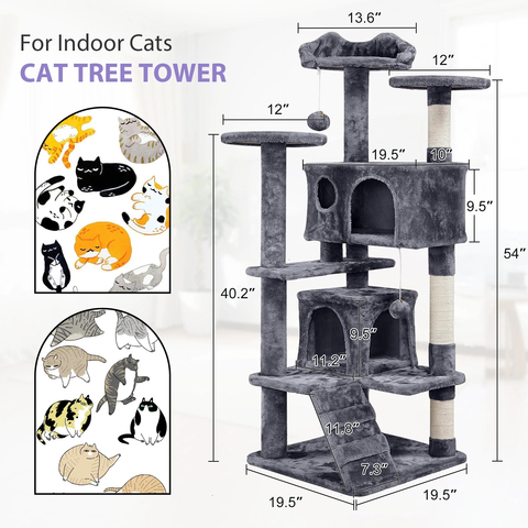 Torre Multi-livello per gatti con tiragraffi-Design durevole in peluche e legno, mobili per gatti per più gatti per giocare e riposare