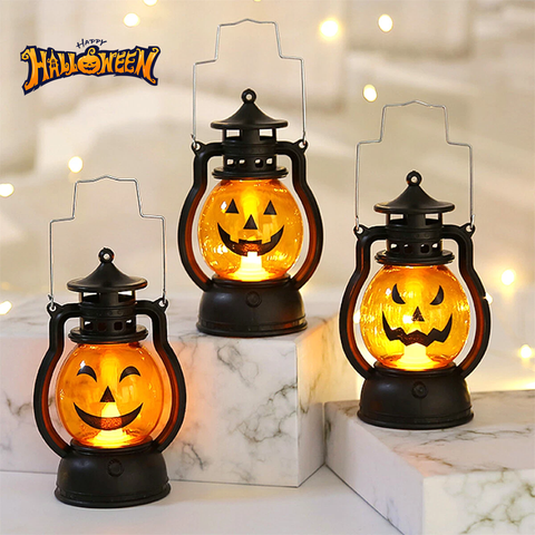 Lampada di zucca a batteria per la scuola di Halloween, portatile Jack-o lanterna con LED senza fiamma
